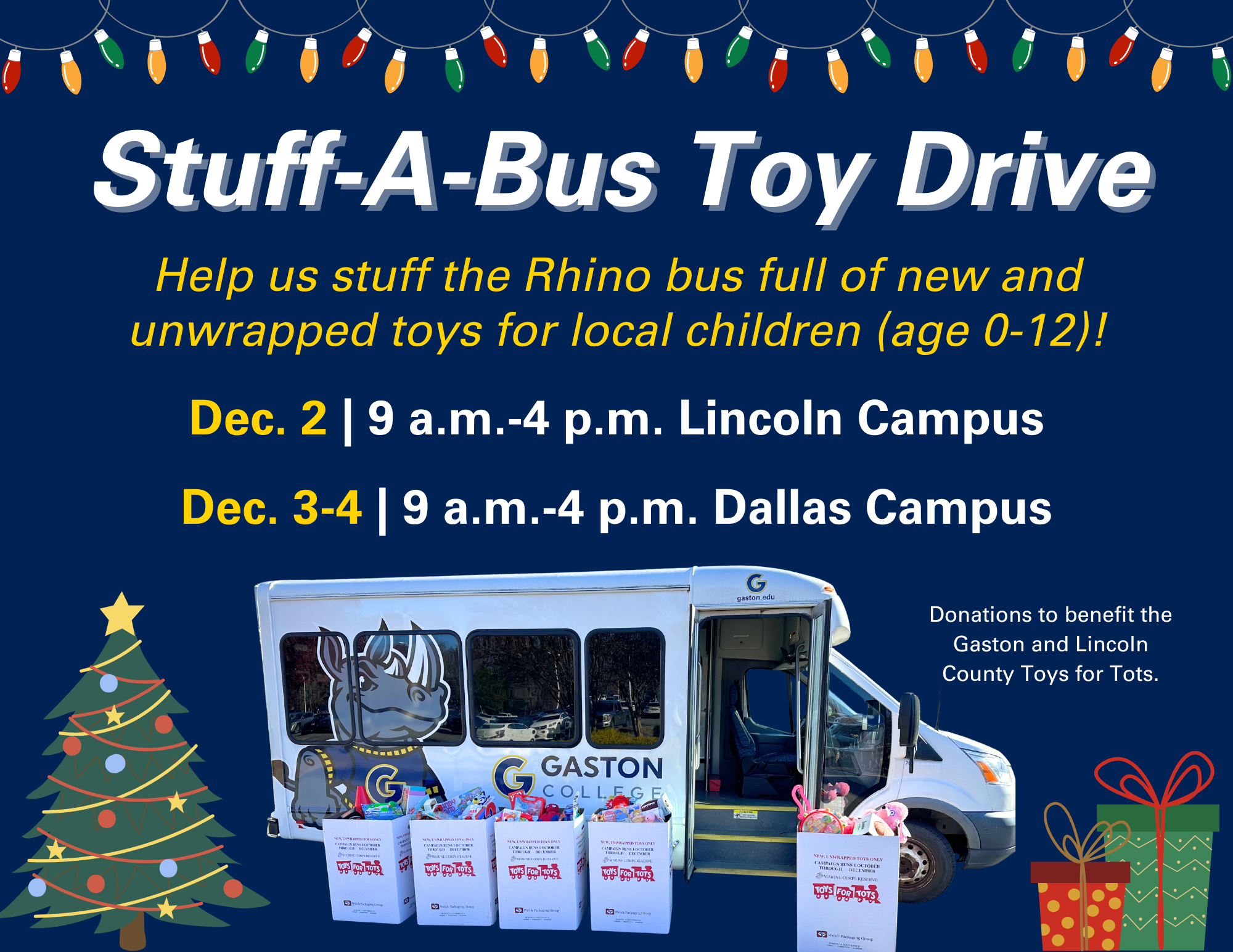 Our Stuff-A-Bus Toy Drive for Toys for Tots is back, and the College invites the community to join in collecting new, unwrapped toys for kids ages 0-12.